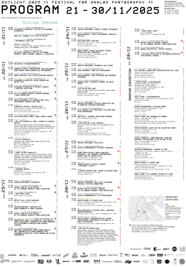 ROTLICHT is back on track, as the creative fixture of analog artistic photography in Central Europe. It will take place in Vienna for the third time this year from November 17-26.